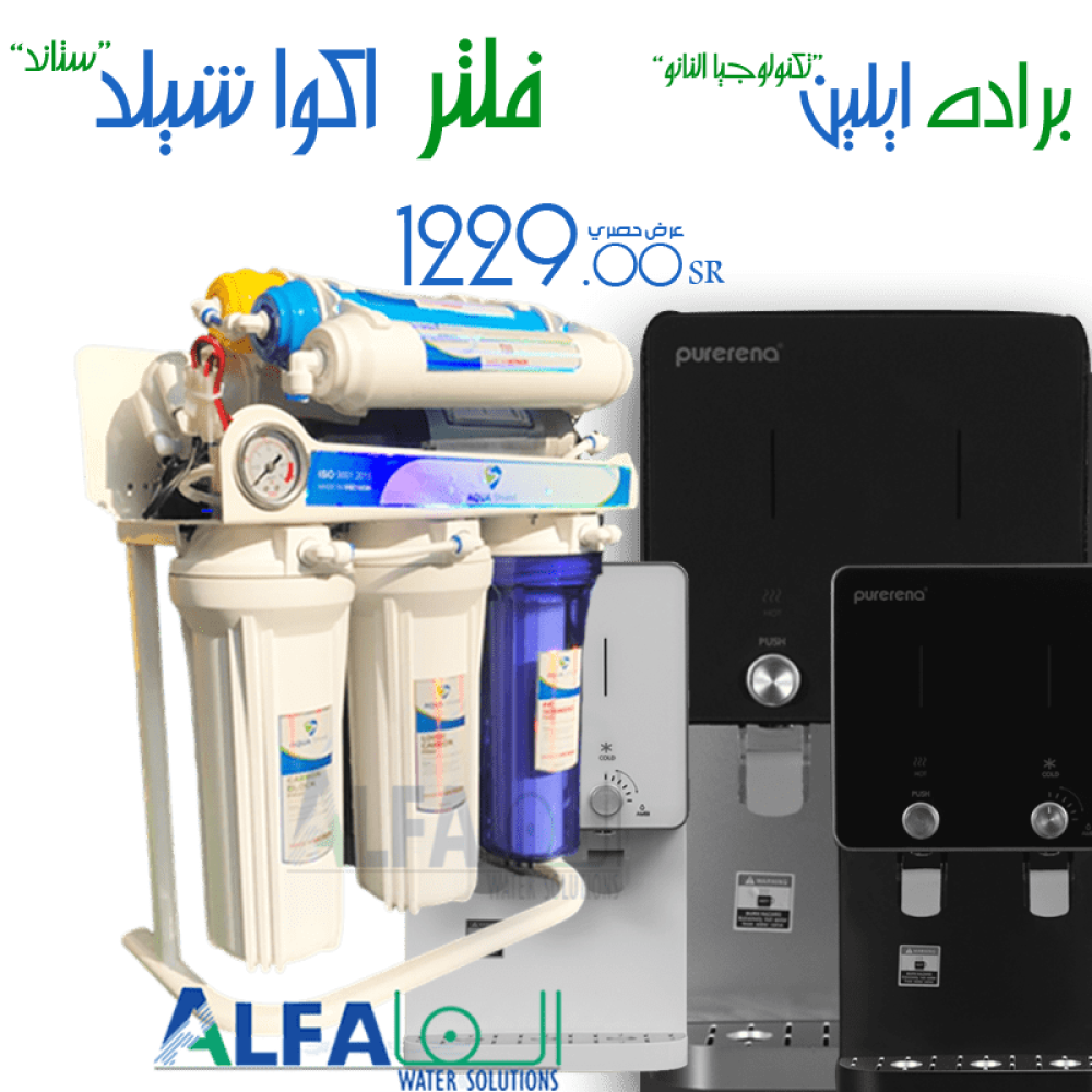 باكدج فلتر اكوا شيلد 7 مراحل مع برادة ايلين الفاخرة – جهاز تحلية متكامل | ALFA PURITY